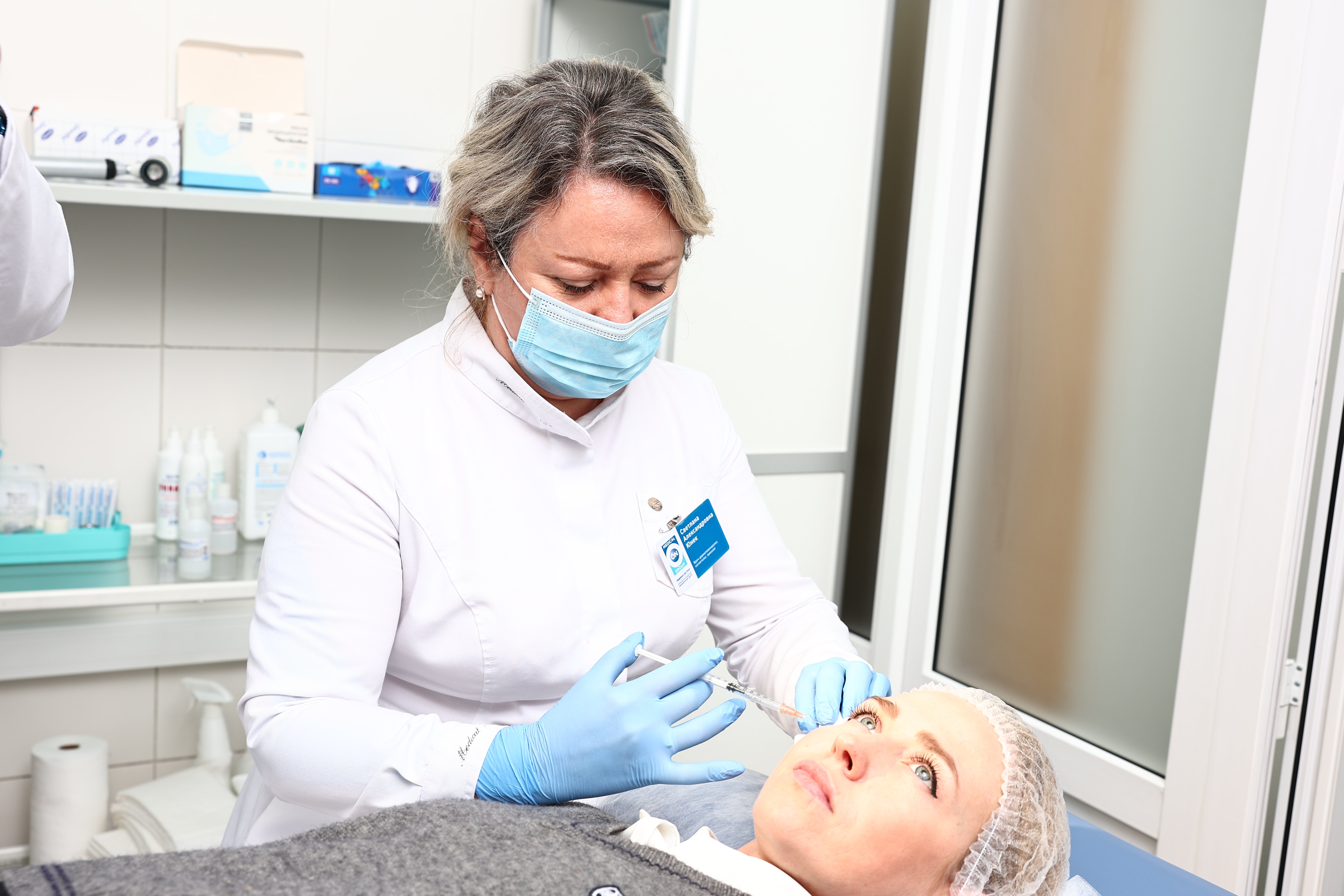 Врач-дерматовенеролог, косметолог, трихолог Юнек С.А. проводит косметологическую процедуру